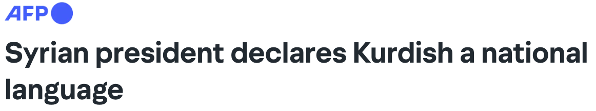 当地时间1月16日(周五),叙利亚总统艾哈迈德·沙拉于周五签署法令,正式将库尔德语列为国家语言,这是该国自1946年独立以来,首次以官方形式承认库尔德人的民族权利。