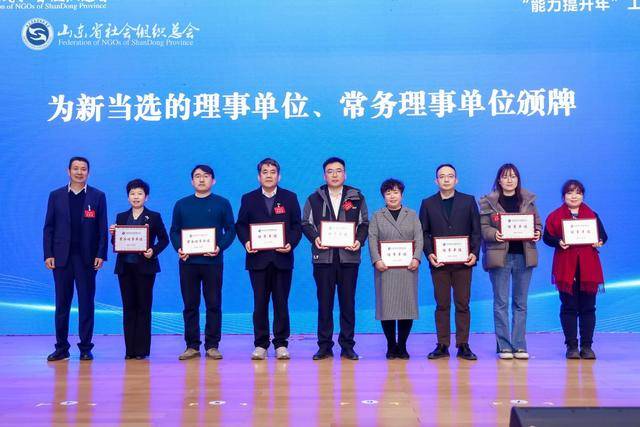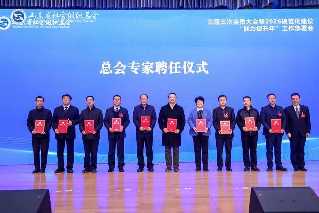 孙录宝副会长发布《2025-2026社会组织专题调研课题立项名单》,并提出2026社会组织专题调研课题征集计划;罗永焕副会长宣读《山东省社会组织总会关于对会员单位2025年度“双融双创”实事项目予以表扬的通报》,通报表扬42个会员单位2025年度“双融双创”实事项目案例;聂庆喜副会长为“山东省社会组织为老服务项目宣传推介活动”联合推介单位颁发感谢状。
