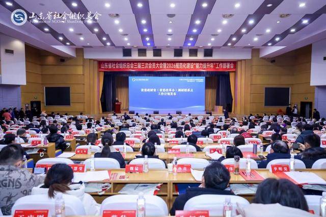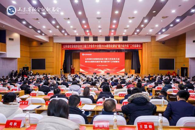 1月23日,山东省社会组织总会三届三次会员大会暨2026规范化建设“能力提升年”工作部署会在济南举行。省社会组织管理局副局长、省社会组织综合党委副书记周亚军,中国社会组织促进会副会长兼秘书长刘忠祥出席并讲话。省委政研室(省委改革办)政治研究处副处长姚军,济南市政协副秘书长、研究室主任张伟超,济南市历下区政协党组副书记、副主席王莹等莅临指导。总会会长班子成员、党委委员、监事,260多家会员单位代表参会,总会“双融双创”专家、“社会组织党建”专家、“社会组织规范化建设”专家以及来自省内约150家社会组织的代表受邀现场观摩。