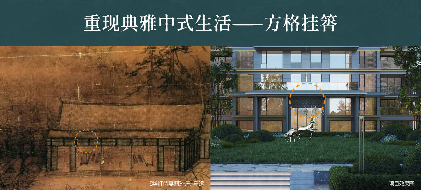 以宋代生活为模板,通过云顶飞檐、版引檐、擗帘杆、挂䈋、寻杖、平坐等中式建筑元素的现代演绎,实现功能与美学的平衡。