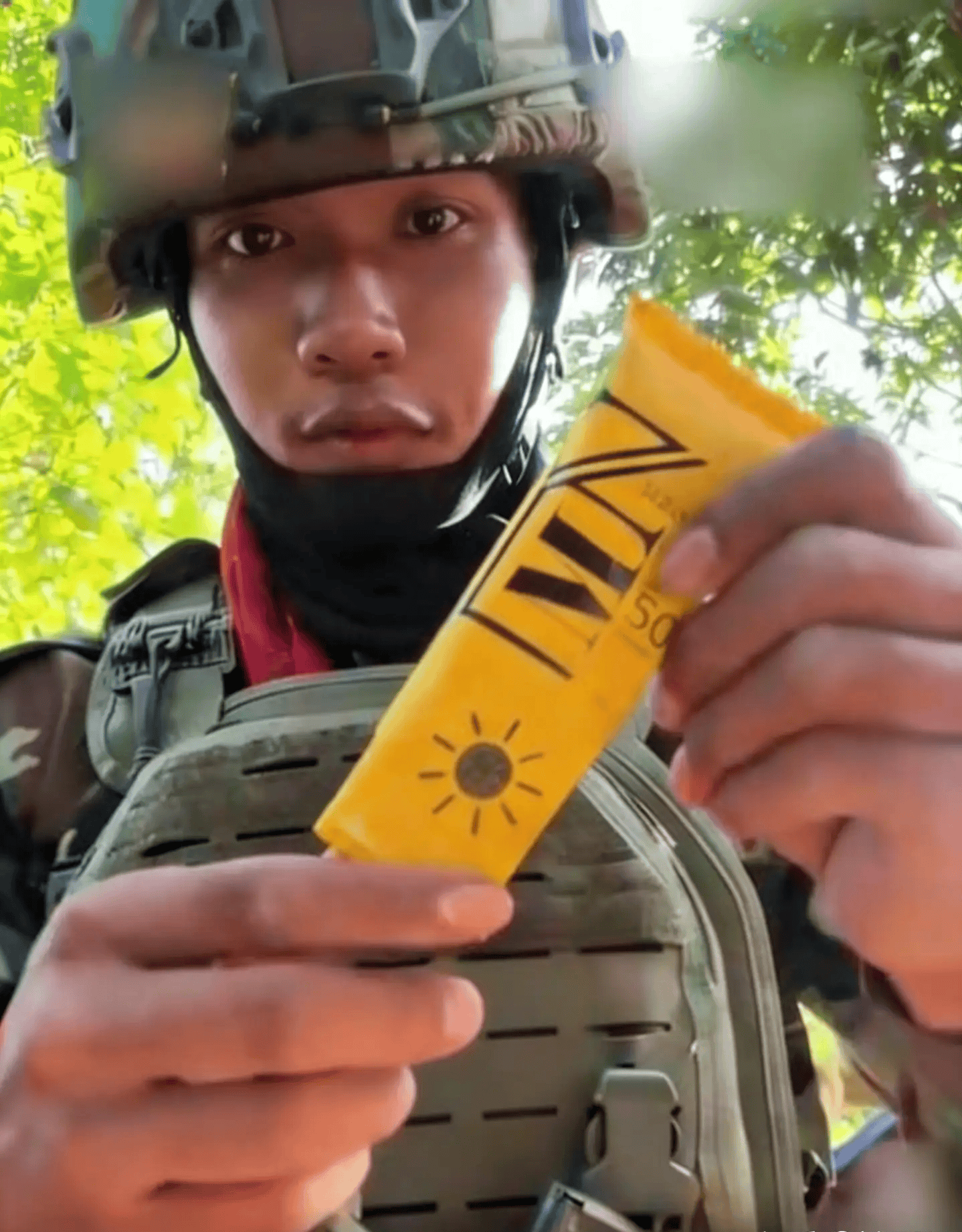 你看,前线的炮火中,柬埔寨士兵还在直播带货防晒霜。