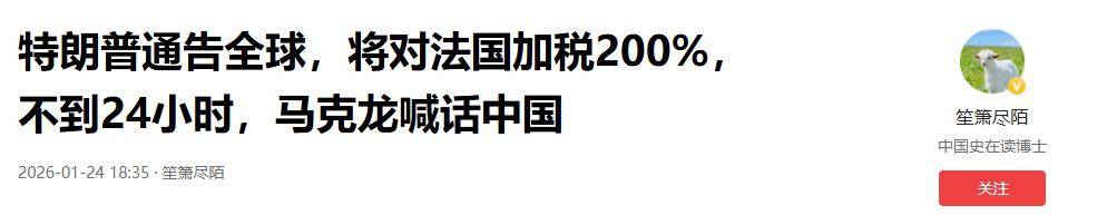 1月19日,特朗普在迈阿密公开放话,威胁如果法国不加入他主导的“和平委员会”,就要对法国葡萄酒和香槟征收高达200%的关税,这一言论迅速在全球市场引发震荡,也让美欧关系再度陷入紧张。