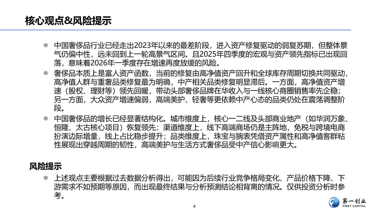 今天分享的是:2026第一创业奢侈品行业景气度研究