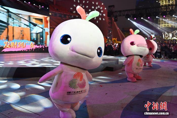 1月25日晚,请到广东过大年·广东文旅邀您来 —— 广货行天下 湾区购物嘉年华发布仪式在广州市海心沙举行。图为大湾鸡带来暖场表演。中新社记者 陈楚红 摄