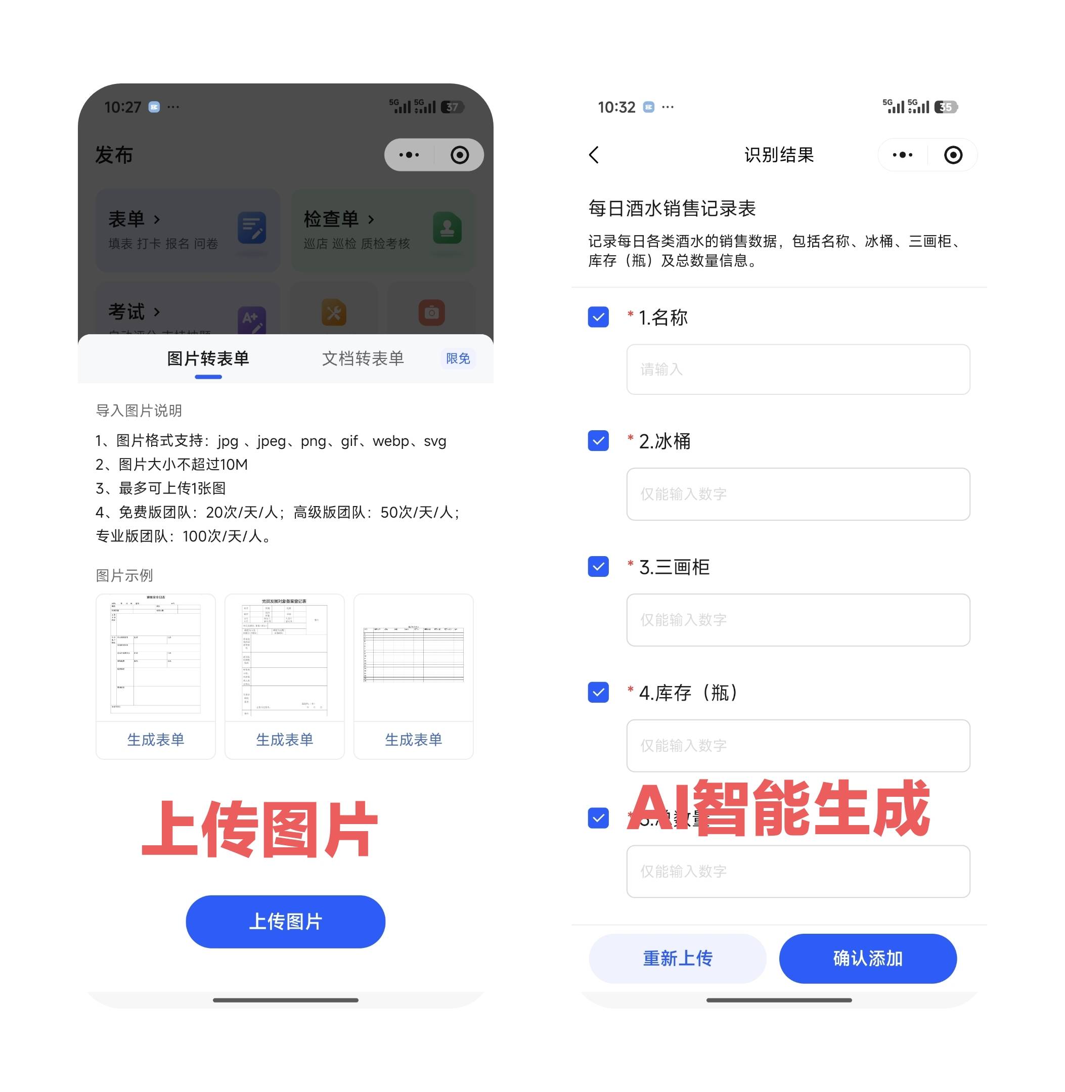 上传现有的 Excel 模板,AI 自动识别字段生成表单;