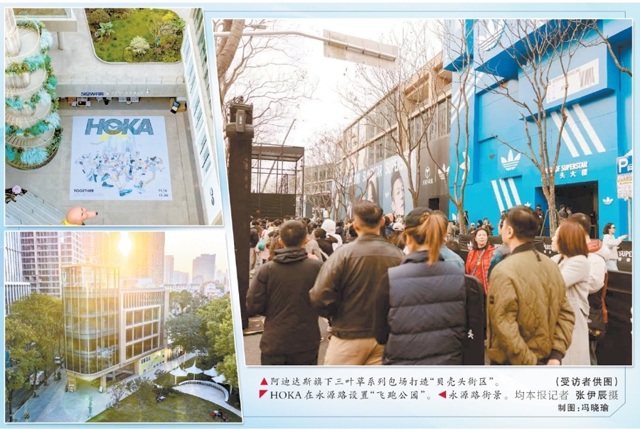 永源路在哪里?或许很多市民都不熟悉,但国内外潮流品牌已把它当作下一条愚园路、安福路。2024年底,永源路上第一家店才刚刚开业,如今街区已“出圈”:王嘉尔及团队TEAM WANG design来这里开设嘉年华限定集市;阿迪达斯包下它,“爆改”成贝壳鞋街区;HOKA在街口设置为期半个月的“飞跑公园”,500多位参赛选手在“上马”后共赴“飞跑夜宴”。