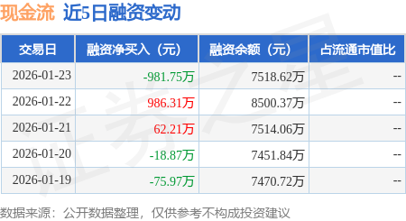 证券之星消息,1月23日,现金流(159399)融资买入561.28万元,融资偿还1543.03万元,融资净卖出981.75万元,融资余额7518.62万元。