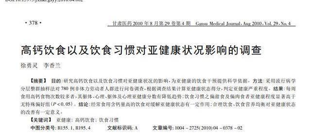 [1]徐勇灵,李香兰.高钙饮食以及饮食习惯对亚健康状况影响的调查[J].甘肃医药,2010,