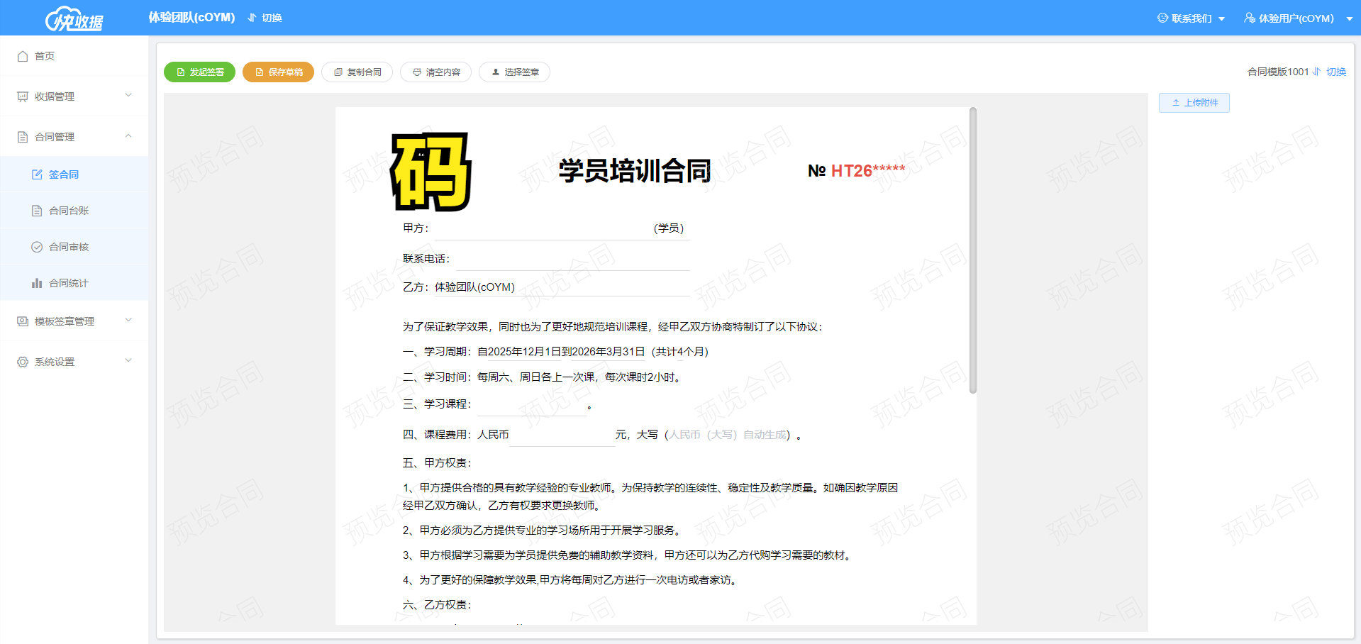 借助所见即所得的界面,能够轻松填写合同内容,关键信息会自动保存。