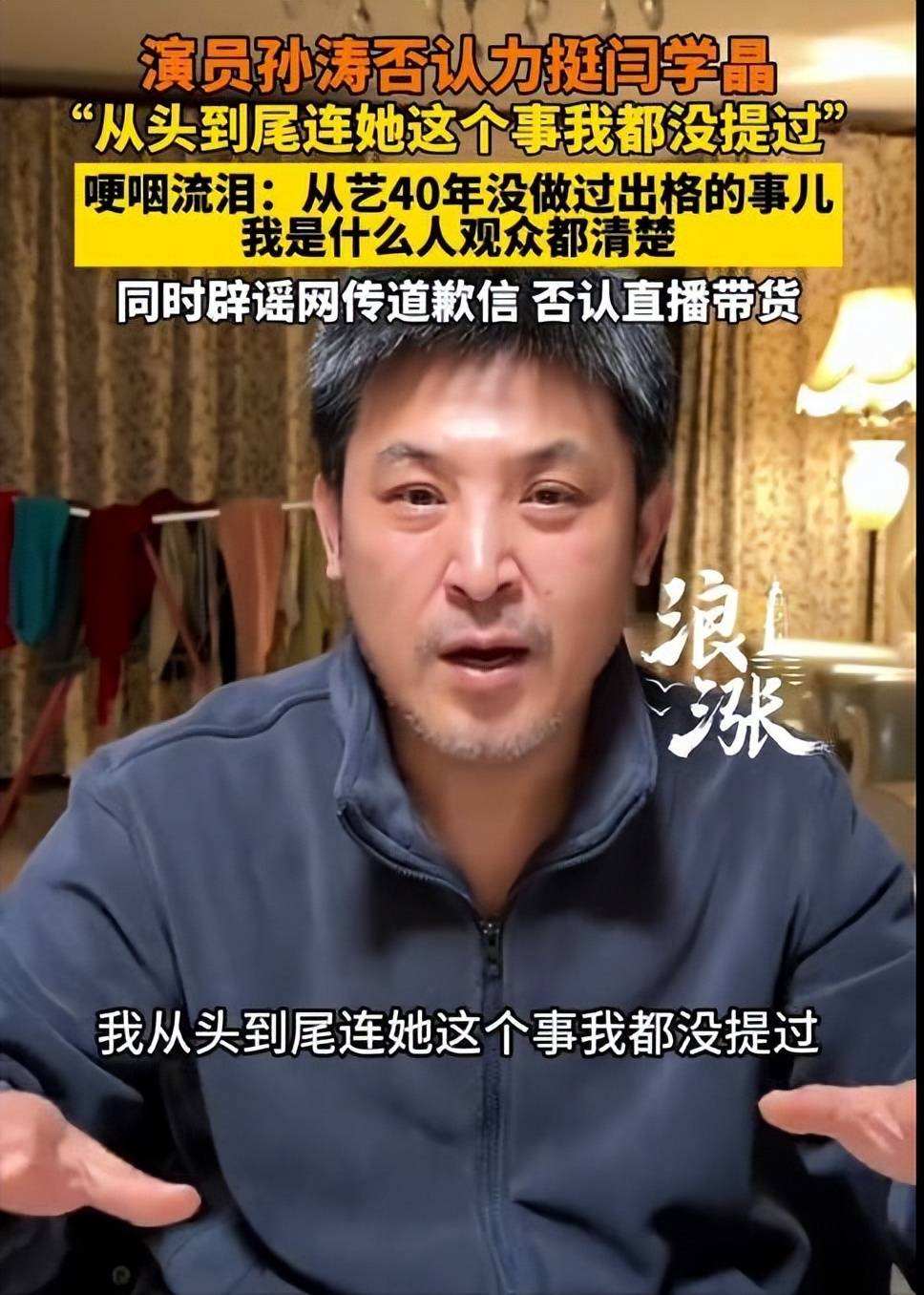 他指出,部分观众被谣言误导,但他不怪大家,而是对那些捏造事实、恶意攻击的人感到痛恨。事实上,孙涛和朋友一同观看过直播回放,他根本没有对闫学晶事件发表任何意见,甚至连提都没提过她。那些说他力挺闫学晶的文章,都是对他无端泼脏水,还把他妻子的过往牵扯进来。孙涛在视频中痛苦流泪,他恳求大家不要再轻信谣言,放过他和他的家庭。