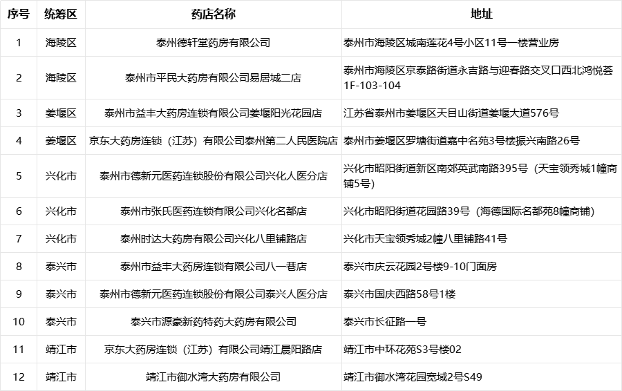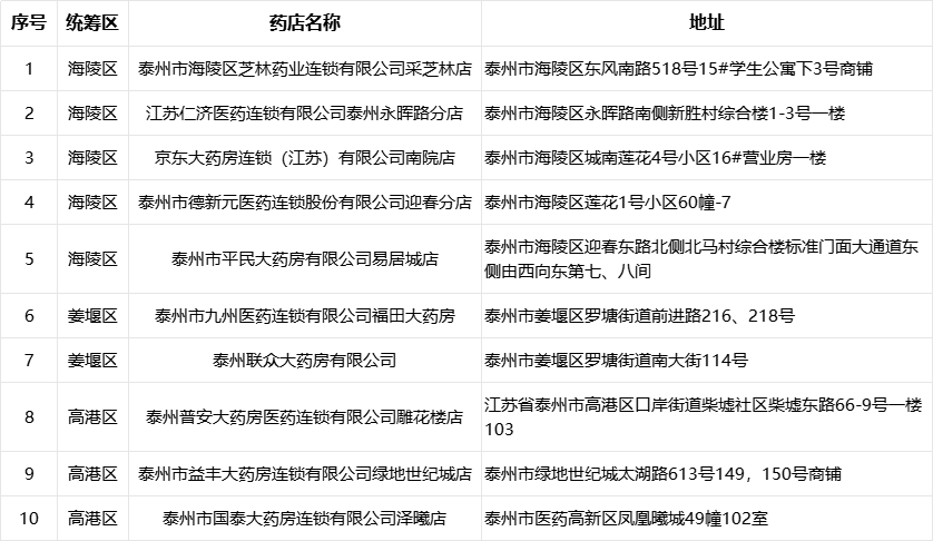 泰州市区首批医保线上购药试点药店名单