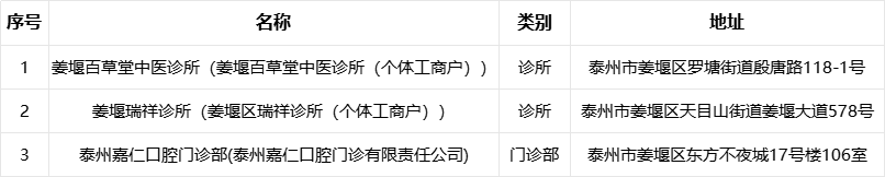 泰州市区基本医疗保险新增定点