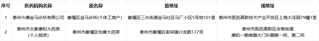根据《泰州市医疗保障局关于印发泰州市医药机构基本医疗保险协议管理经办规程(2024版)的通知》(泰医保办发〔2024〕2号)要求,经变更申请、现场核查等程序,拟将3家定点医药机构信息变更名单(见附件)予以公示。