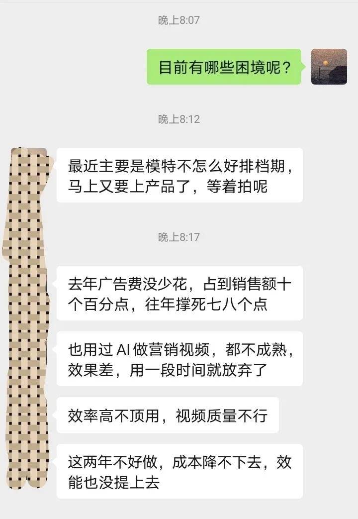 借助AI视频工具行不行?过去几年,随着AI的快速发展,很多电商人蠢蠢欲动,跃跃欲试。老张也曾把希望寄托在AI视频工具上,但在使用过程中发现:市面上这些AI工具在商用层面暴露出了严重的不足。比如说,售卖的产品与模特之间的一致性就难以保证,生成视频中的品牌LOGO无法稳定呈现,画面常常会出现一些不合理的物理逻辑错误。消费者并非没有注意到,一眼看穿后想下单的欲望直接降至地板。原本以为,AI是降本增效的救命草,没想到只是“玩具”,根本无法有效满足营销需求。