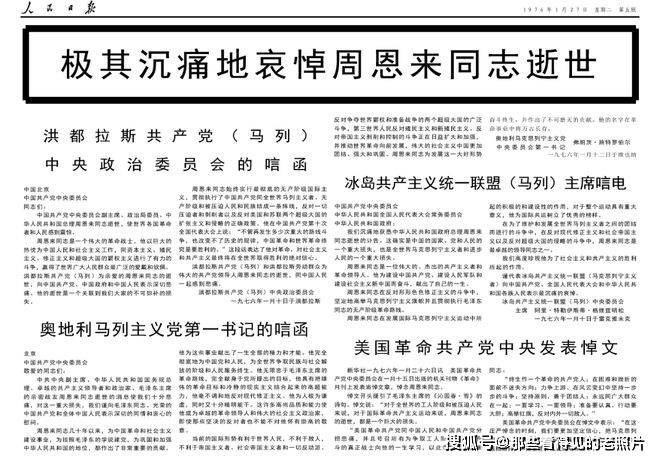 极其沉痛地哀悼周恩来同志逝世