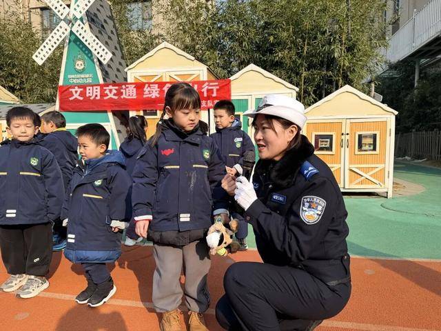 1月23日上午,交管四大队民警走进辖区管城中心幼儿园第三幼儿园,为孩子们带来了一场生动有趣,寓教于乐的交通安全宣传活动。