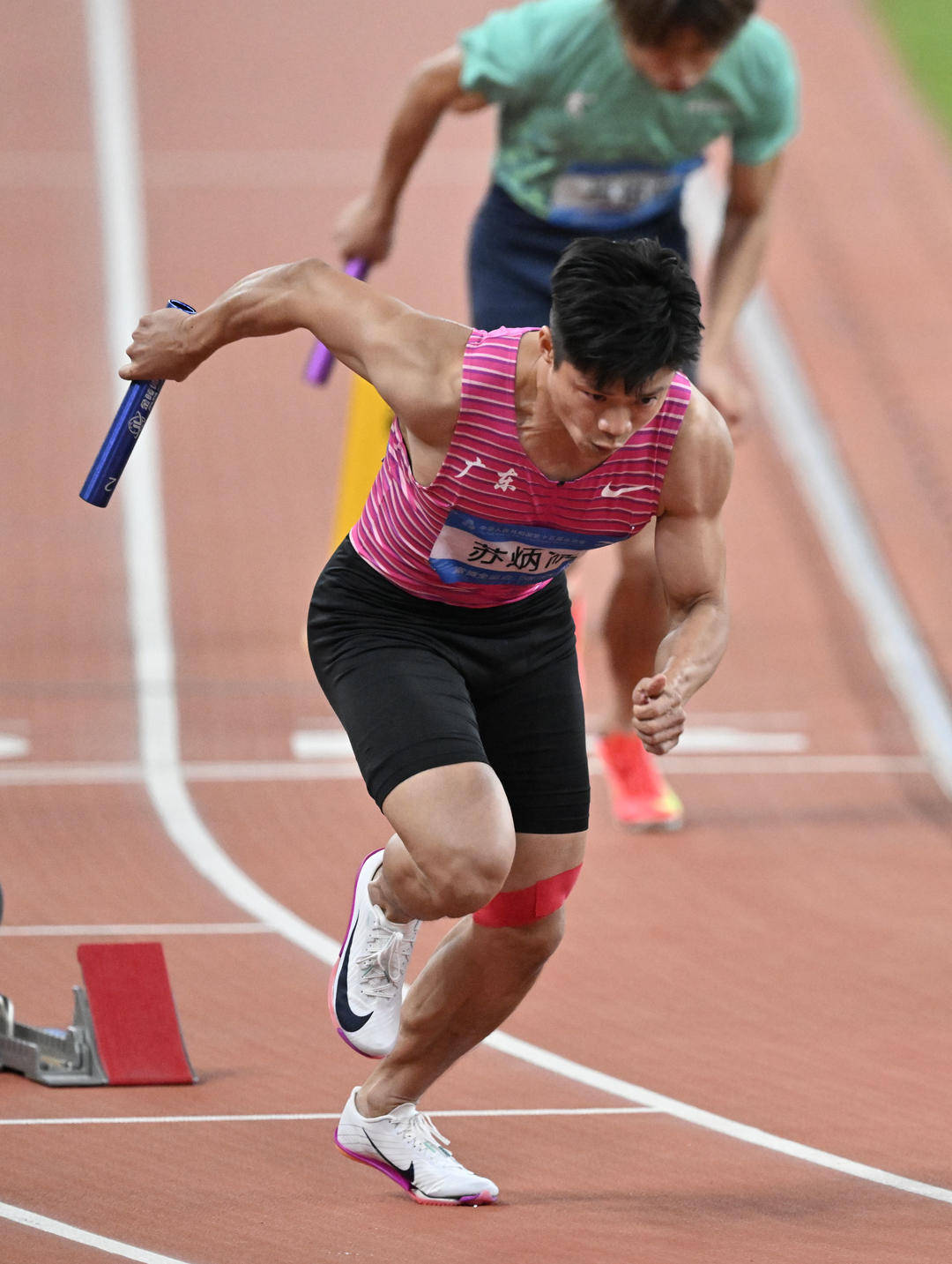 苏炳添的“最后一班”,就是本届全运会的男子4×100米接力。苏炳添在东京奥运会上跑出惊人的9秒83,成为“亚洲之光”。同年在第十四届全运会上,他又在男子百米大战中跑出9秒95,打破谢震业保持的10秒04的全运会纪录,首次夺得全运会男子百米冠军。