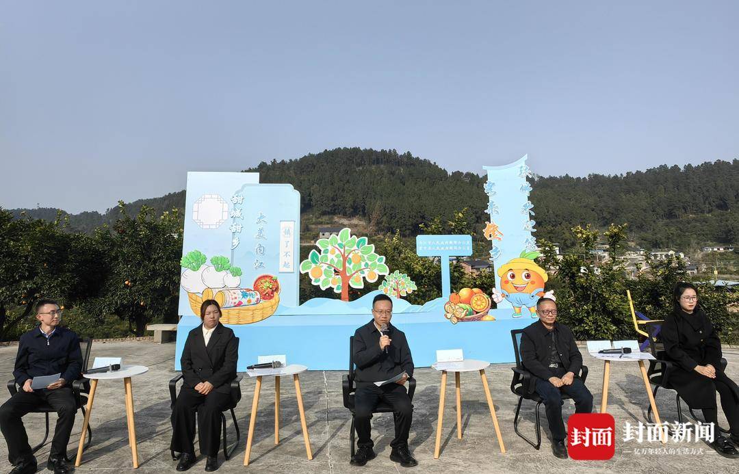 1月27日,“‘镇’了不起”系列主题新闻发布会资中县铁佛镇专场,在柏龙社区橙果百户大院热闹启幕。会场就设在血橙基地中,沉甸甸的血橙挂满枝头。现场陈列的铁佛镇特产琳琅满目,直观展现着这座古镇的产业活力。