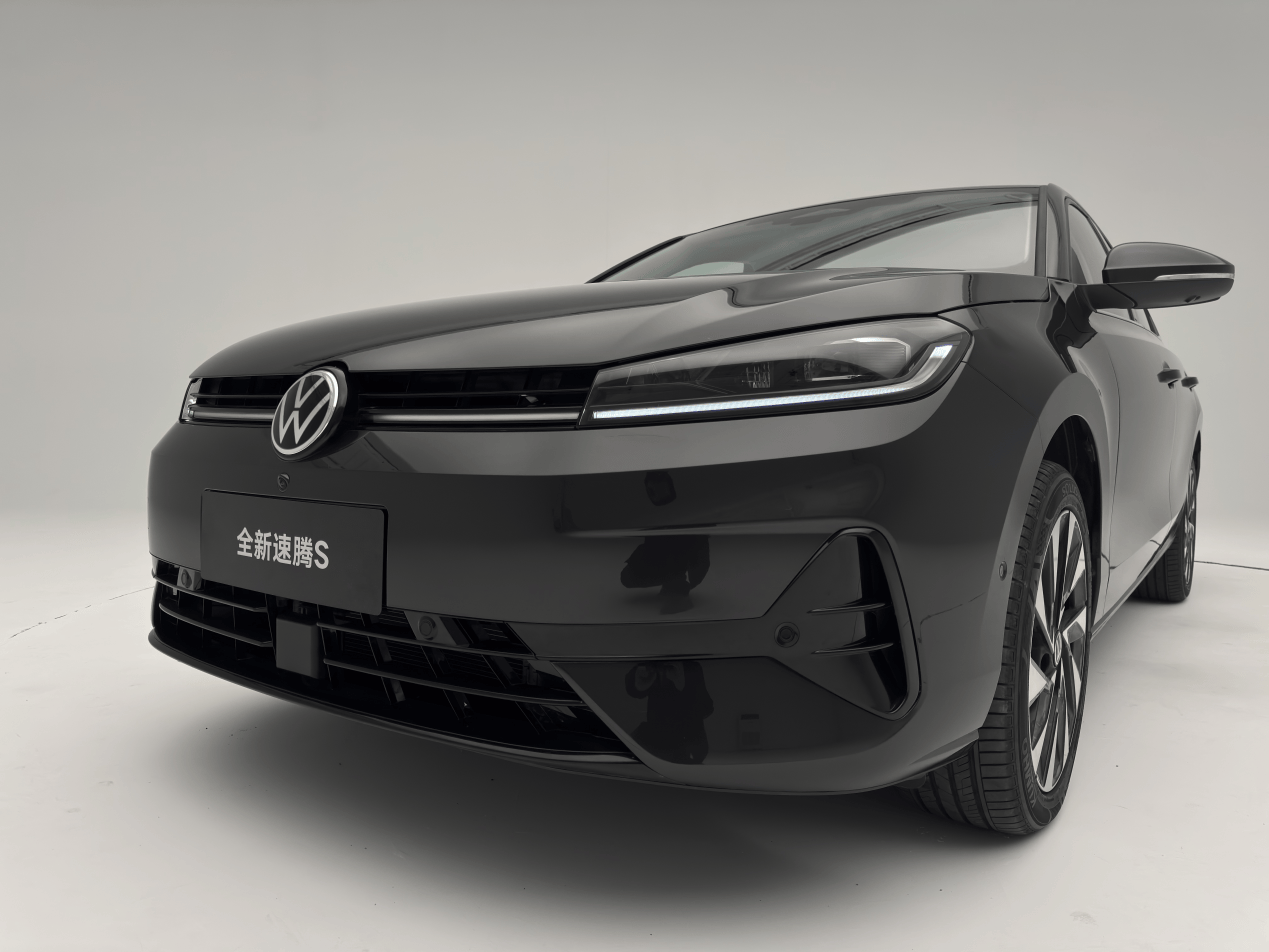 全新速腾S延续家族式风格并与全新一代速腾L一脉相承,以“几何化精炼”理念重塑车身线条,彻底摆脱传统家用车的沉闷。前脸横向延展的六边形星辉式3D中网,搭配与海外版相似的犀利LED大灯组,通过黑色饰条无缝衔接,大幅强化宽体视觉感。下方凌厉的多辐式导流槽,兼顾美学与空气动力学。