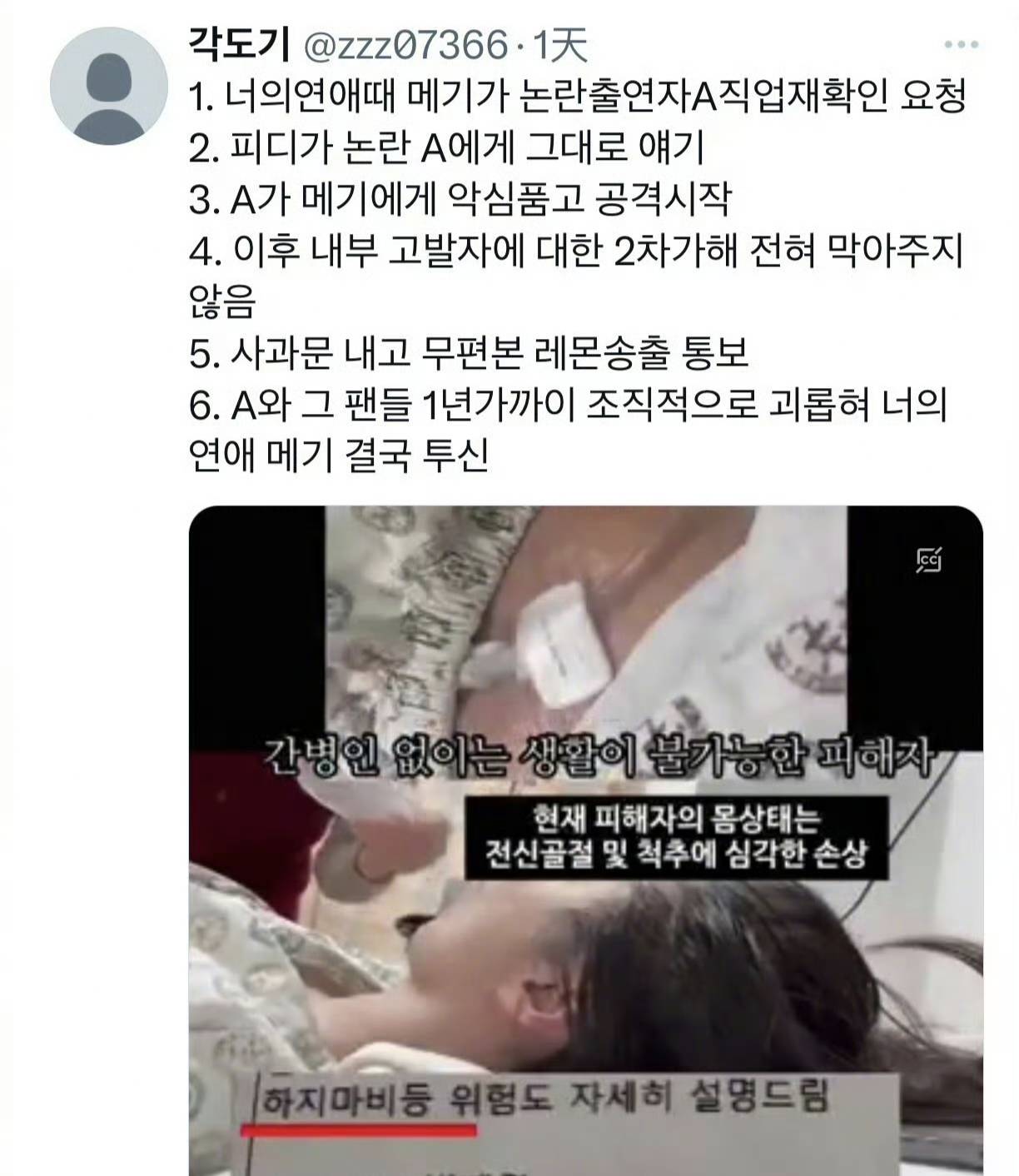 整件事看下来,真的让人忍不住想问:什么时候开始,揭穿谎言成了原罪?什么时候开始,保护节目真实性的人反而成了被网暴的对象?这年头,做个诚实的人都要冒着生命危险了吗?只能说,韩娱圈的魔幻现实主义,永远在刷新我们的认知下限。希望孙玟羽能挺过来,也希望那些躲在键盘后面的网暴者,能早日明白:你的每一句恶语,都可能成为压垮别人的最后一根稻草。