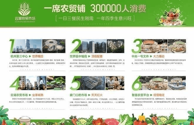 新型智慧农贸市场的有哪些优势?- 采用大数据科学化管理,确保农产品品质和食品安全。- 实现食品溯源,提升消费者信任度。- 租金稳定,投资总价低,受大环境影响小。- 拥有微信程序平台,可接入美团、京东等主流平台,支持线上下单和线下 配送