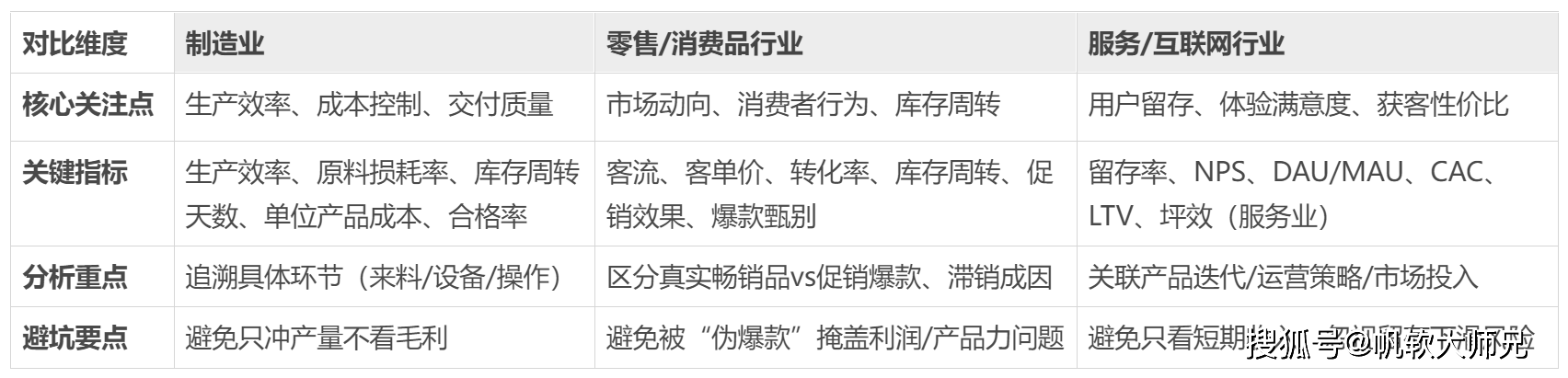 对于服务业和互联网公司,产品往往是无形的服务或用户体验。因此,经营分析不能只看收入利润,更要看用户是否愿意留下来、是否对服务满意、获得新用户的成本是否合理。