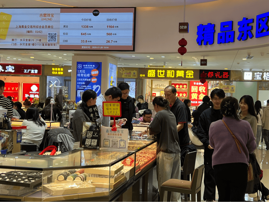 1月28日下午,中国证券报记者走访深圳水贝多个商场发现,许多柜台均有投资银条售卖,规格为100g—1000g不等,其中1000g银条售价有的达33800元。