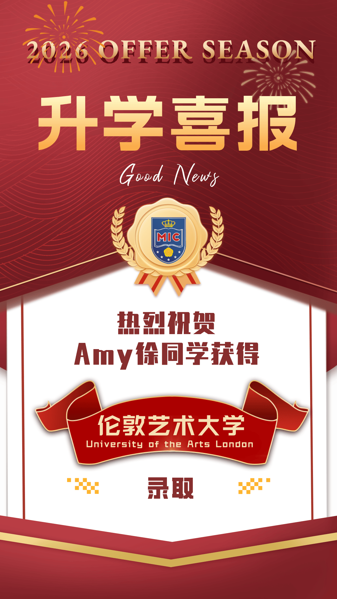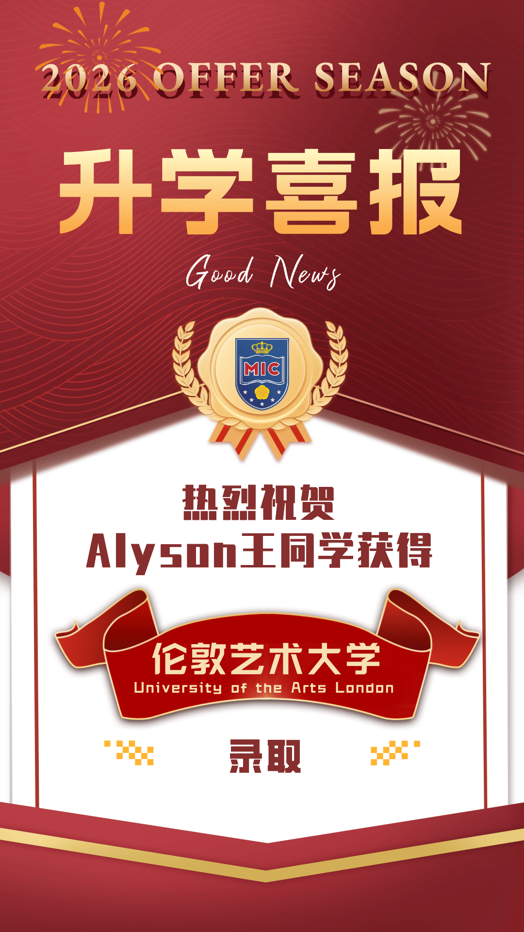 Alyson王与Amy徐同学双双喜获世界顶级艺术学府——伦敦艺术大学(UAL)的青睐!