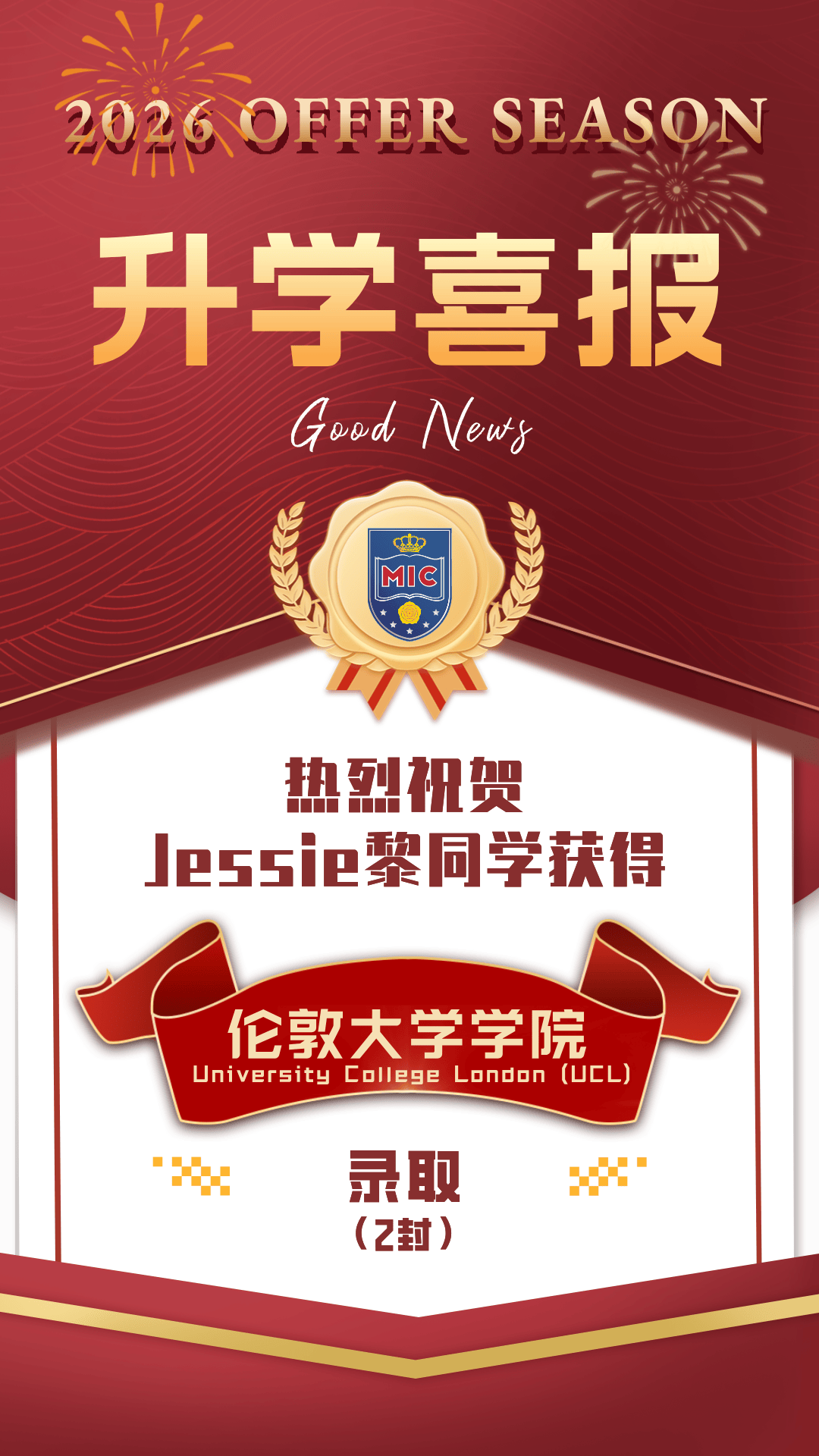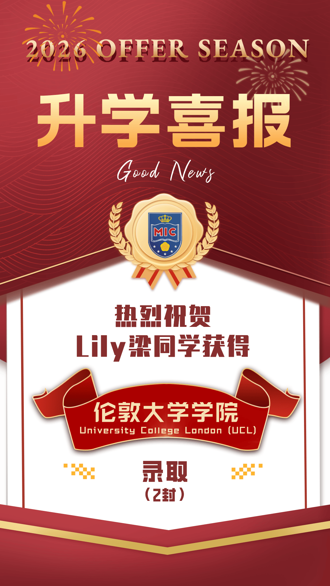 To date, 6 outstanding MIC students have received a cumulative total of 8 UCL offers! Hearty congratulations to: Jessie Li (2 offers), Sunnie He, Peter Qiu, Melody Luo, Michelle Ye, and Lily Liang (2 offers)!