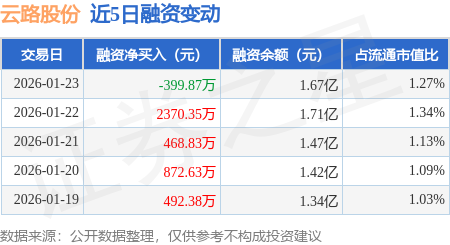 证券之星消息,1月23日,云路股份(688190)融资买入3647.21万元,融资偿还4047.07万元,融资净卖出399.87万元,融资余额1.67亿元,近20个交易日中有15个交易日出现融资净买入。