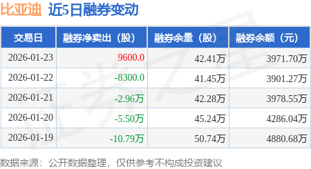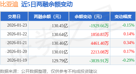 证券之星消息,1月23日,比亚迪(002594)融资买入2.88亿元,融资偿还3.08亿元,融资净卖出2000.08万元,融资余额130.05亿元,近20个交易日中有11个交易日出现融资净买入。