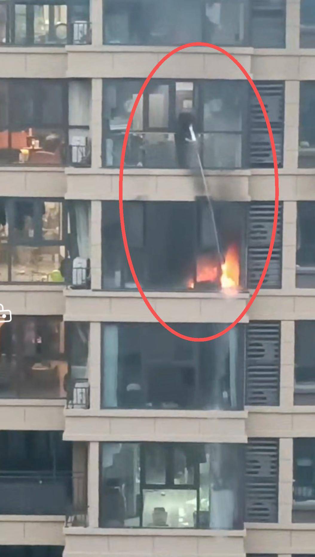 近日,正在休假的杜道新接孩子放学后,前往中梁首府小区时,突然发现一栋居民楼阳台冒出火光与浓烟。危急时刻,他迅速安置好孩子,冲进楼道展开救援。凭借日常培训掌握的消防技能,他熟练地打开消防栓、连接水带,并在热心居民的协助下,从上方楼层窗口对准起火点进行喷射,迅速控制住了火势,为消防队后续处置赢得了宝贵时间。