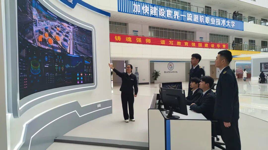 学院师生在山东港口全域云端产教融合实训基地开展实践教学(图片来源:青岛港湾职业技术学院)
