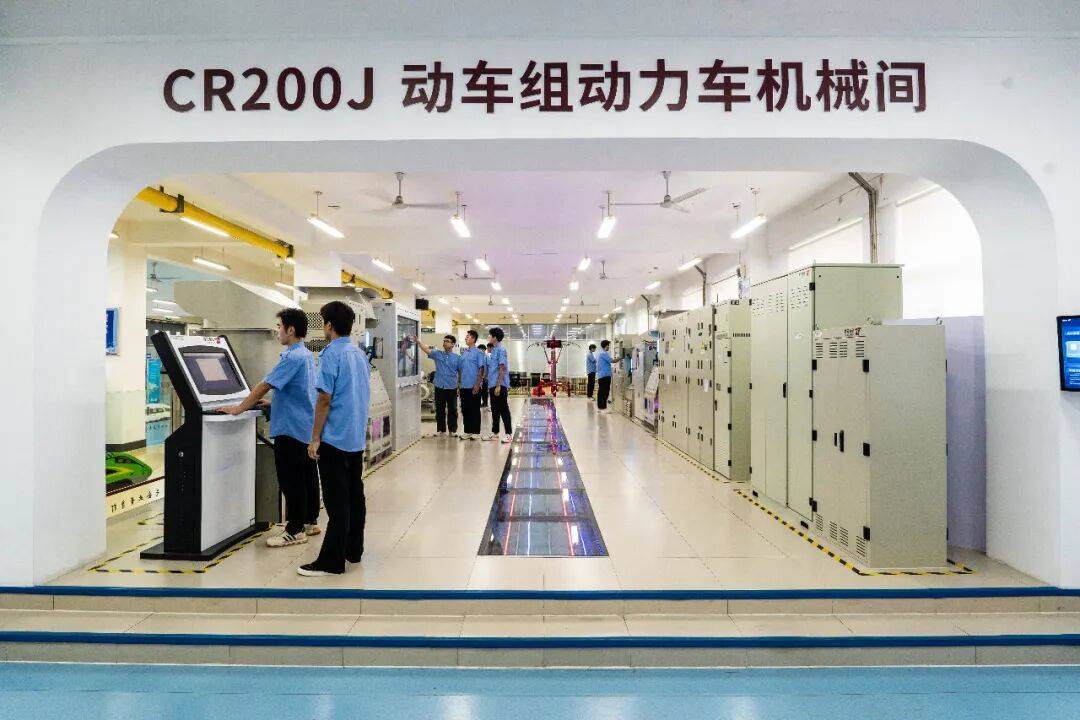 山东职业学院动车组检修技术专业学生在CR200J动车组动力机械间进行实训(图片来源:山东职业学院)