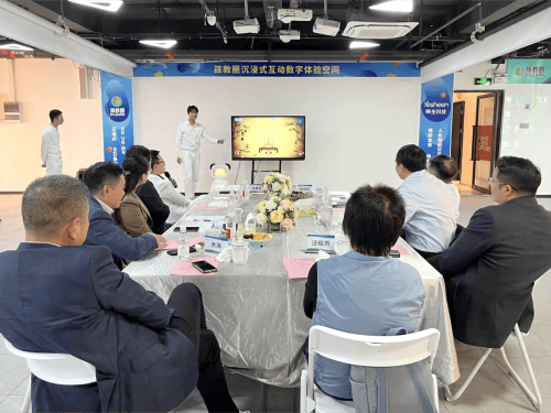 在沉浸式数字互动教育系统展示区,领导们详细了解了系统的应用场景。该系统融合互动多媒体、3D、智能交互等技术,通过动态捕捉实现人与画面实时互动,将抽象知识转化为情景式、游戏式的学习内容。据介绍,系统支持定制化数字教室,如数字科普室、安全教育室、传统文化室等,为幼儿园至高职院校提供沉浸式教育解决方案。