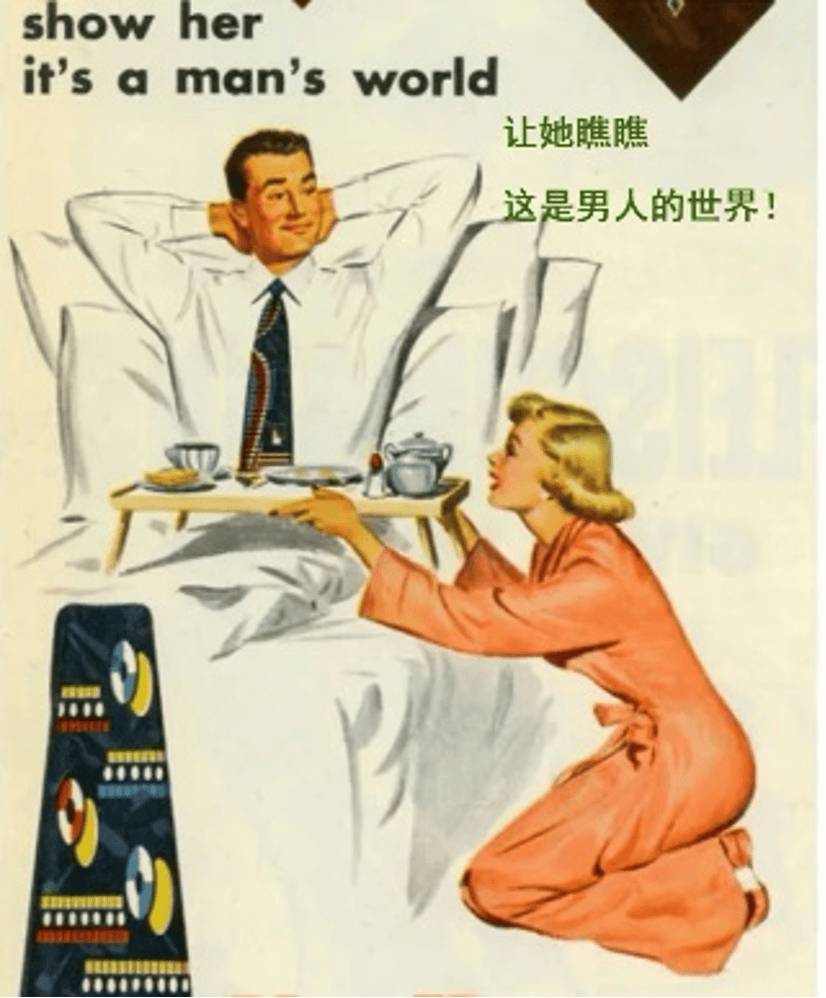 美剧《风骚女子》揭开了上世纪七十年代广告业的真实面貌,那些看似幽默的文案,如“为了喜欢硬家伙的女人准备”“口渴了?我超有料”“一个小盒子里包含着如此多的口味”,在今天看来都充满冒犯。现实中甚至出现过这样的广告:一名男子躺在床上,妻子跪着为他端上早餐,配文写道:“让她看看,这是男人的世界!”