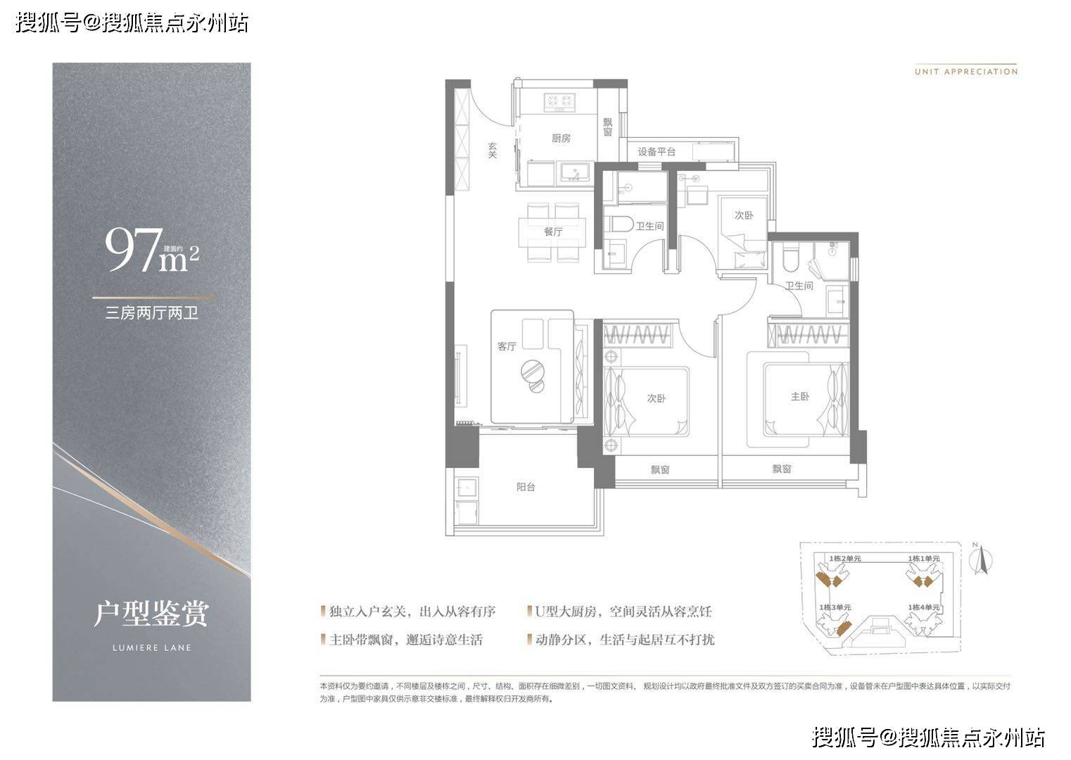 【97㎡的三房495-545万元】动静分区,3开间朝南,核心园林景观,高区无敌视野
