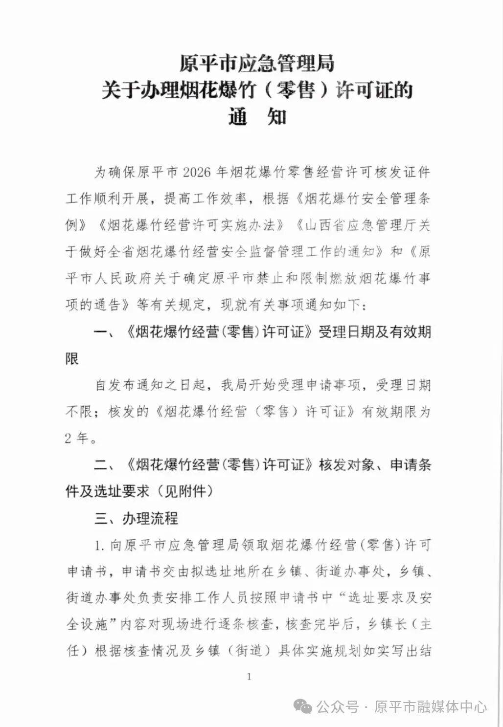 原平市应急管理局关于办理烟花爆竹(零售)许可证的通知