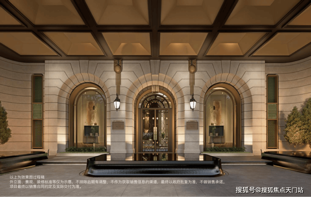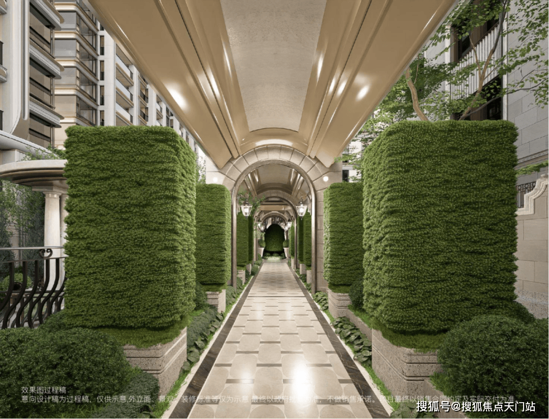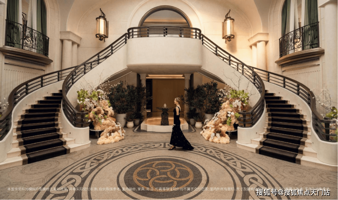 入口致敬伦敦半岛酒店仪序,石狮静守彰显尊崇;中央庭院呼应华尔道夫酒店羿庭柱廊序列,营造韵律社交场景;花园布局借鉴巴黎丽兹酒店对称庄园格式,秩序中藏诗意;一步阳台溯源孙科别墅优雅意境,续写海派从容。