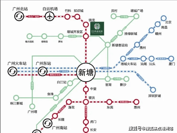 地铁——23号线永宁站(距离项目约1.4km)接驳6号线,半小时抵达天河;23号线直接接驳比亚迪云轨一站到三甲医院、两站到新塘万达;新白广城轨(增城开发区站)串联新塘TOD 半小时湾区核心城市;