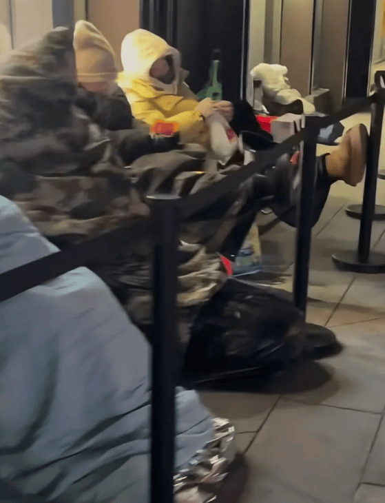 有顾客裹着毯子等待商场开门 来源:网友发布的图