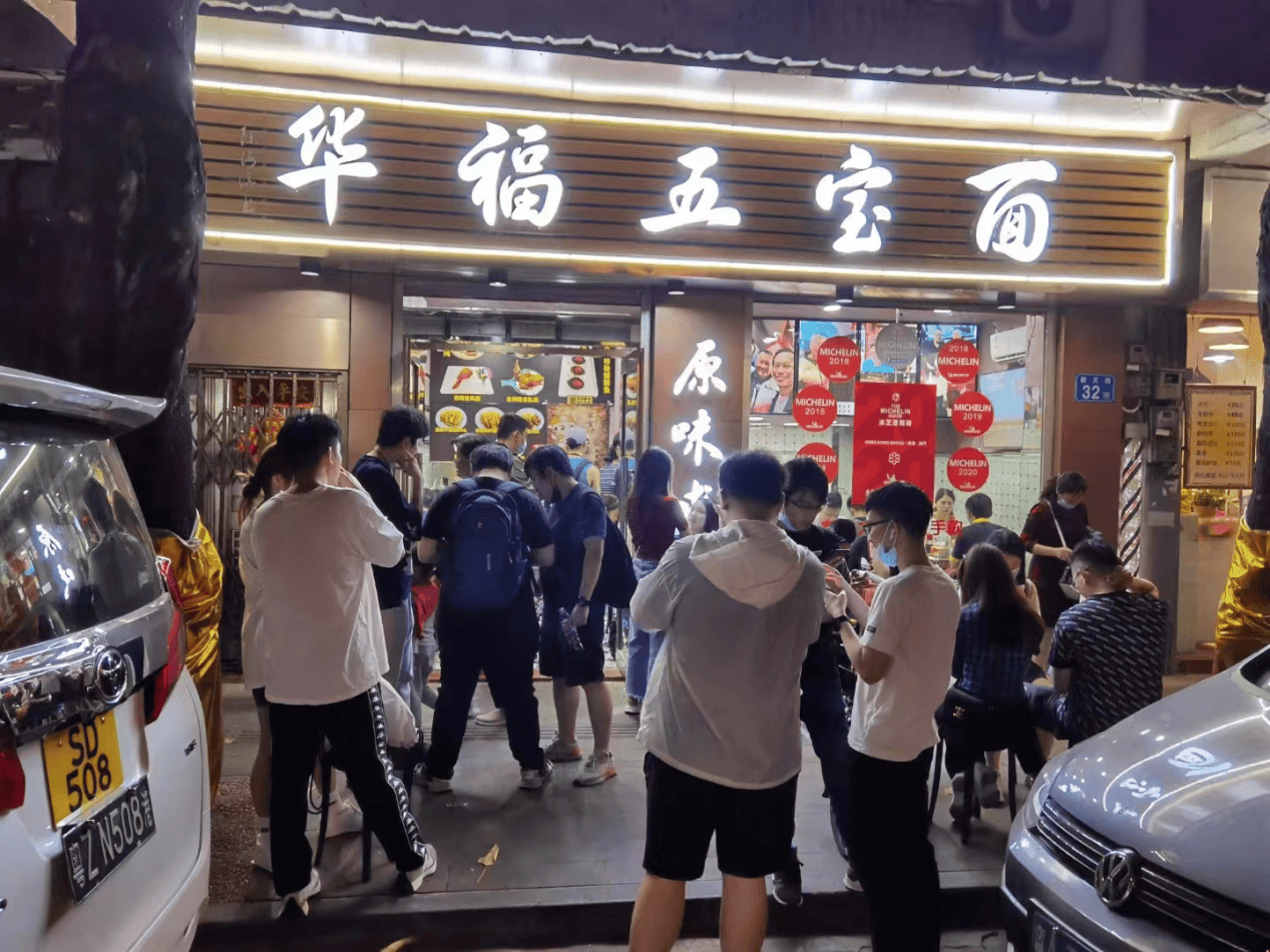 “到了饭点基本都要排队”。华福五宝面朝天路店的女店员介绍,远道而来的食客占比越来越接近街坊。
