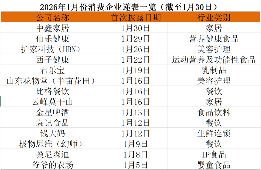 这只是浪潮前奏——君乐宝、钱大妈、袁记食品等知名消费品牌均已向港交所递表。据中国基金报记者统计,2026年开年以来,已有14家消费类企业首次披露H股招股材料,较2025年同期数量明显增多。
