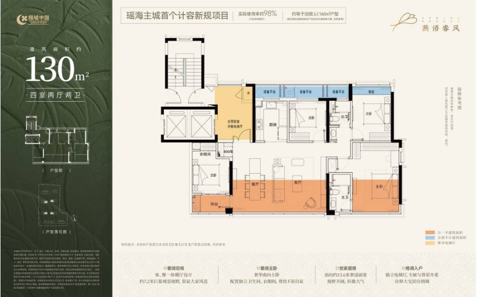 110㎡洋房户型是绿城燕语春风专为改善家庭打造的核心产品,依托洋房低密、通透的优势,打造出舒适度极高的居住空间。该户型整体方正,南北通透,得房率高达 88%,相比高层产品,拥有更宽敞的室内空间和更好的采光通风效果。户型采用 “三开间朝南” 设计,南向面宽达 9.8 米,客厅、主卧、次卧均朝南,确保室内采光充足,即使在冬季也能享受温暖的阳光。