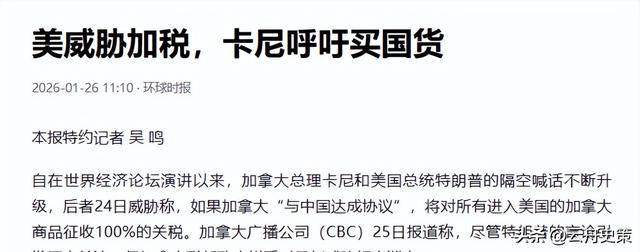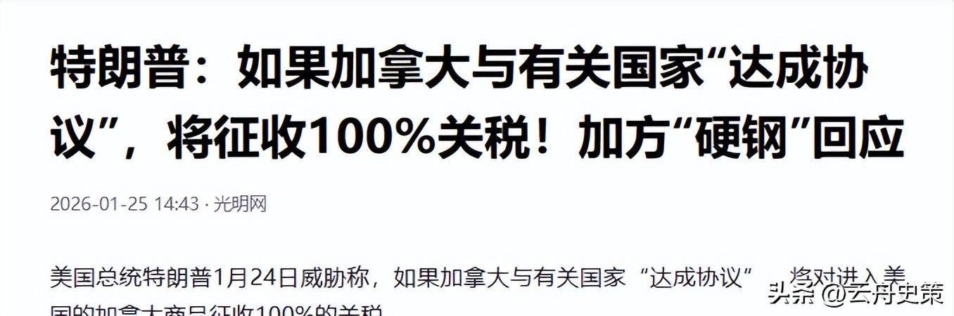 2026年1月24日,一条消息在加拿大政界和商界同时炸开:美国威胁,对所有加拿大输美商品征收100%关税。