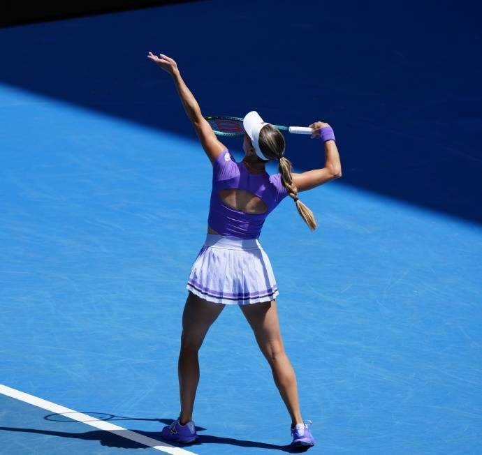 北京时间今晨,2026澳大利亚网球公开赛展开第十个比赛日的较量。今天的单打赛场,男女都将进行上半区的八强战。在率先进行的头号种子、世界第一萨巴伦卡与29号种子、美国小美女约维奇的对决中,虎妞状态出色,以6-3 6-0送蛋击败不怕虎的初生牛犊,新赛季豪取10连胜,连续四年晋级澳网四强,这也是她职业生涯第14次跻身大满贯四强。