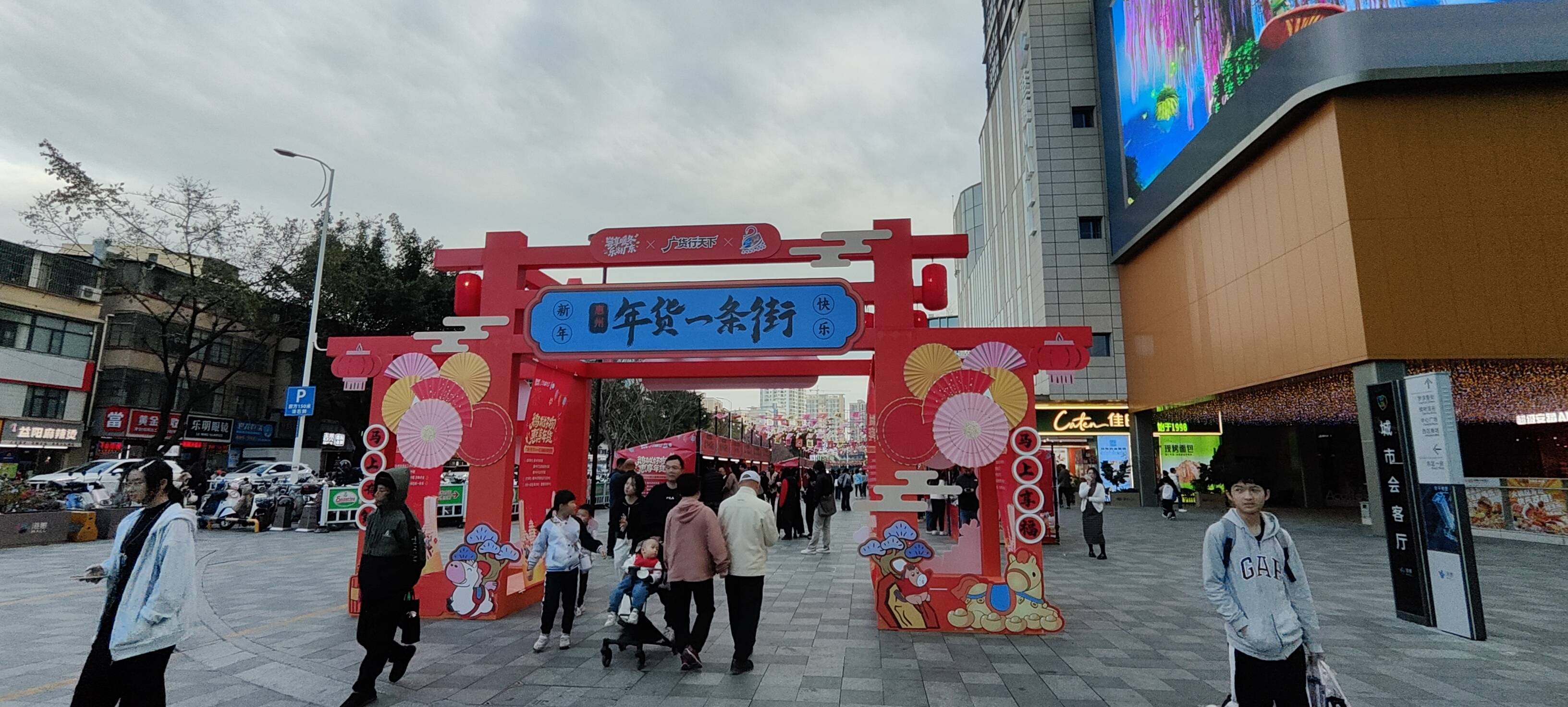 岁末迎祥,年味渐浓。在港惠新天地的年货一条街主会场,集市汇聚了西藏朗县特产、惠州老字号、传统年饰、特色美食、文创产品、公益专区六大展区,春联福字、剪纸灯笼、老字号糕点、新潮文创等一应俱全,吸引众多市民驻足选购。