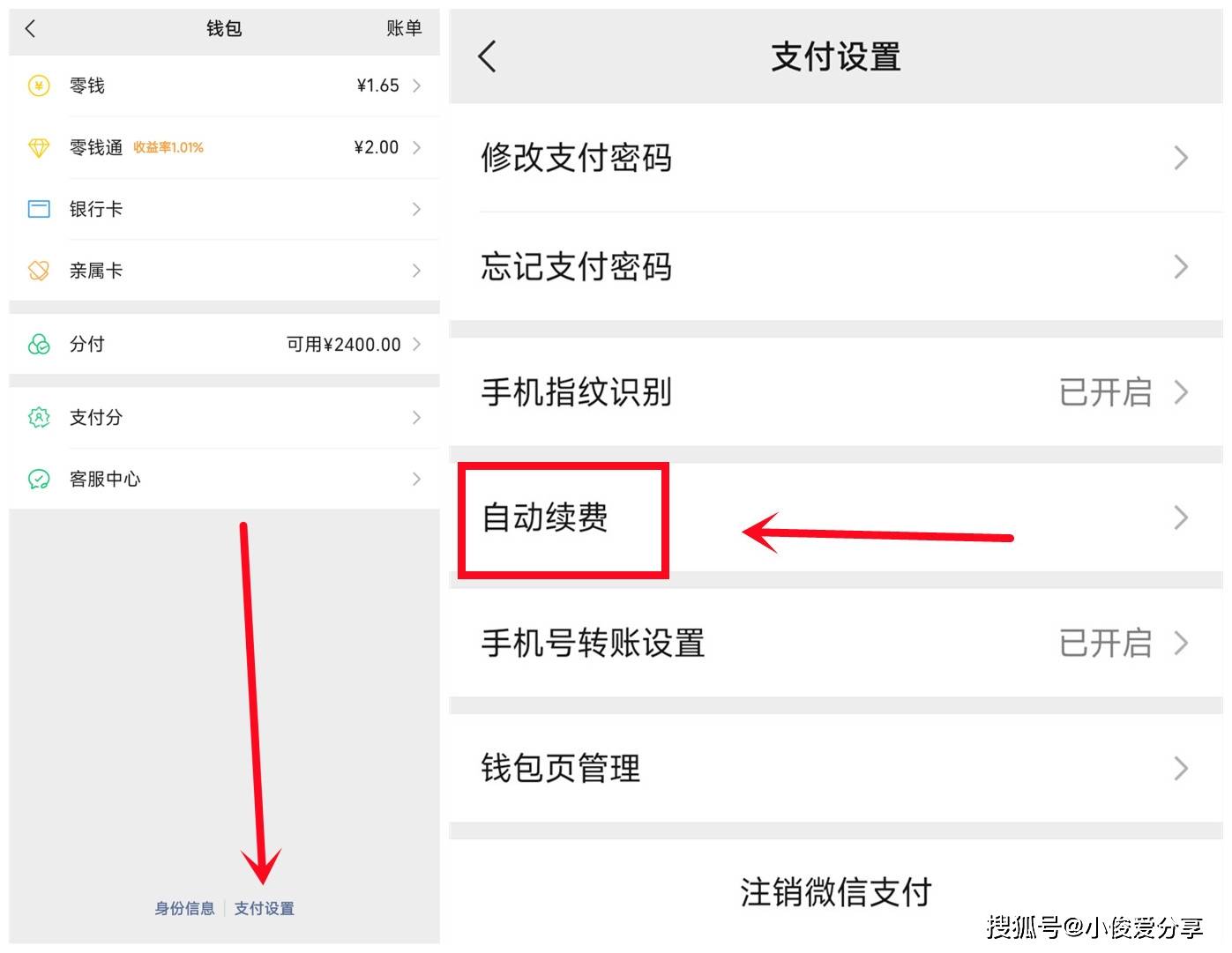打开微信,点击右下角的【我】 -> 【服务】-> 右上角的 【钱包】。进入钱包页面后,找到最底下的 【支付设置】 点进去,这里有一个 【自动续费】 的选项。