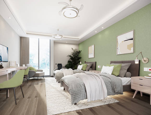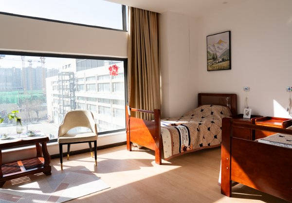 设施特色:总建筑面积2万平方米,设有600张床位,房型涵盖单人间、标准双人间、豪华套间,面积在30-60平方米之间。房间均配备家具、智能家电、无障碍卫浴系统等标准化适老设施,24小时生活热水和应急呼叫系统全程保障。户外有景观凉亭、健身道,步行可至康庄公园,日常休闲很方便。室内功能区丰富,包含电影院、多功能厅、书画室、阅览室、电脑室、棋牌室、台球室、健身房、茶室、会客室,每层居住区还设有公共休闲区。