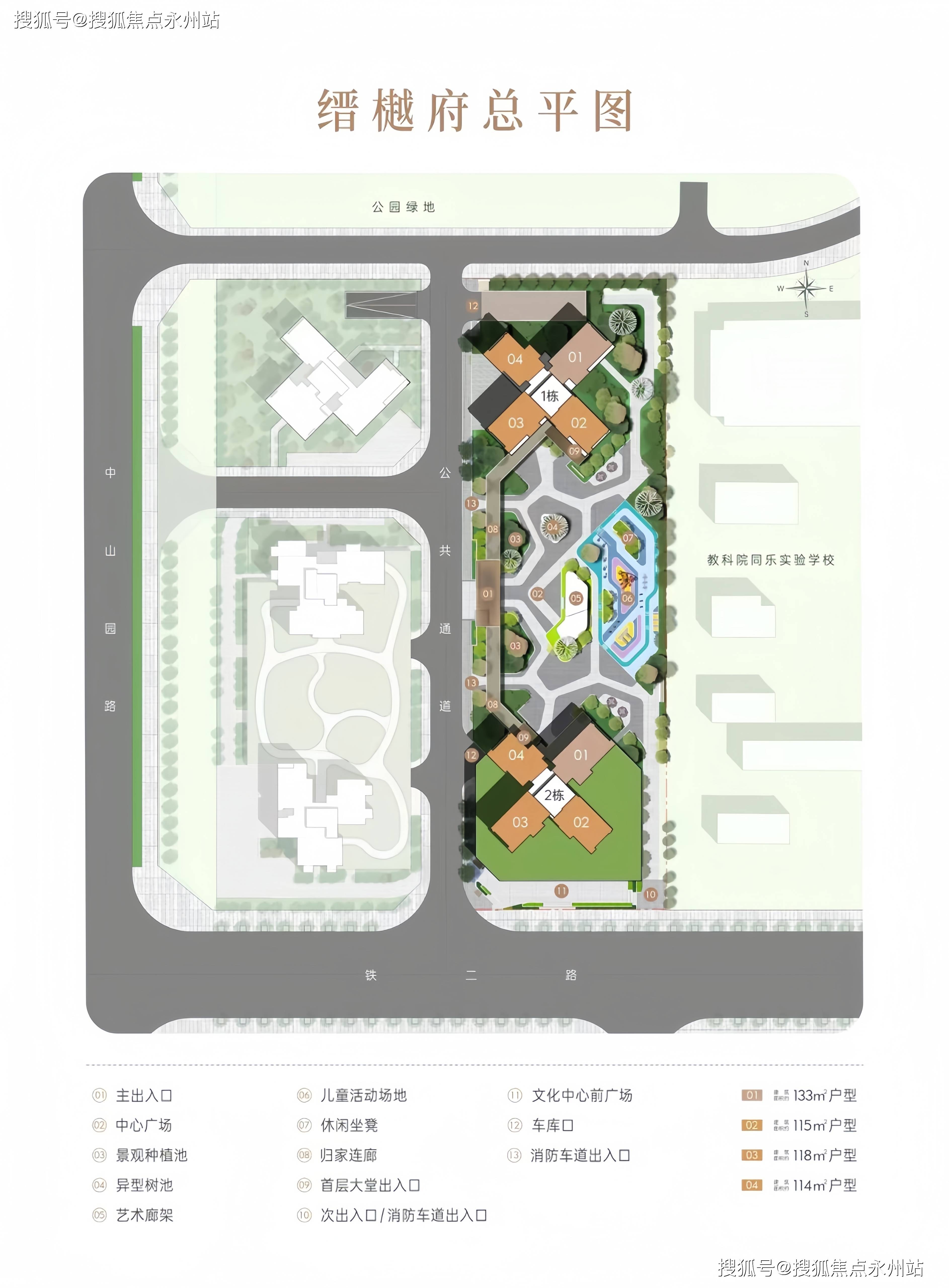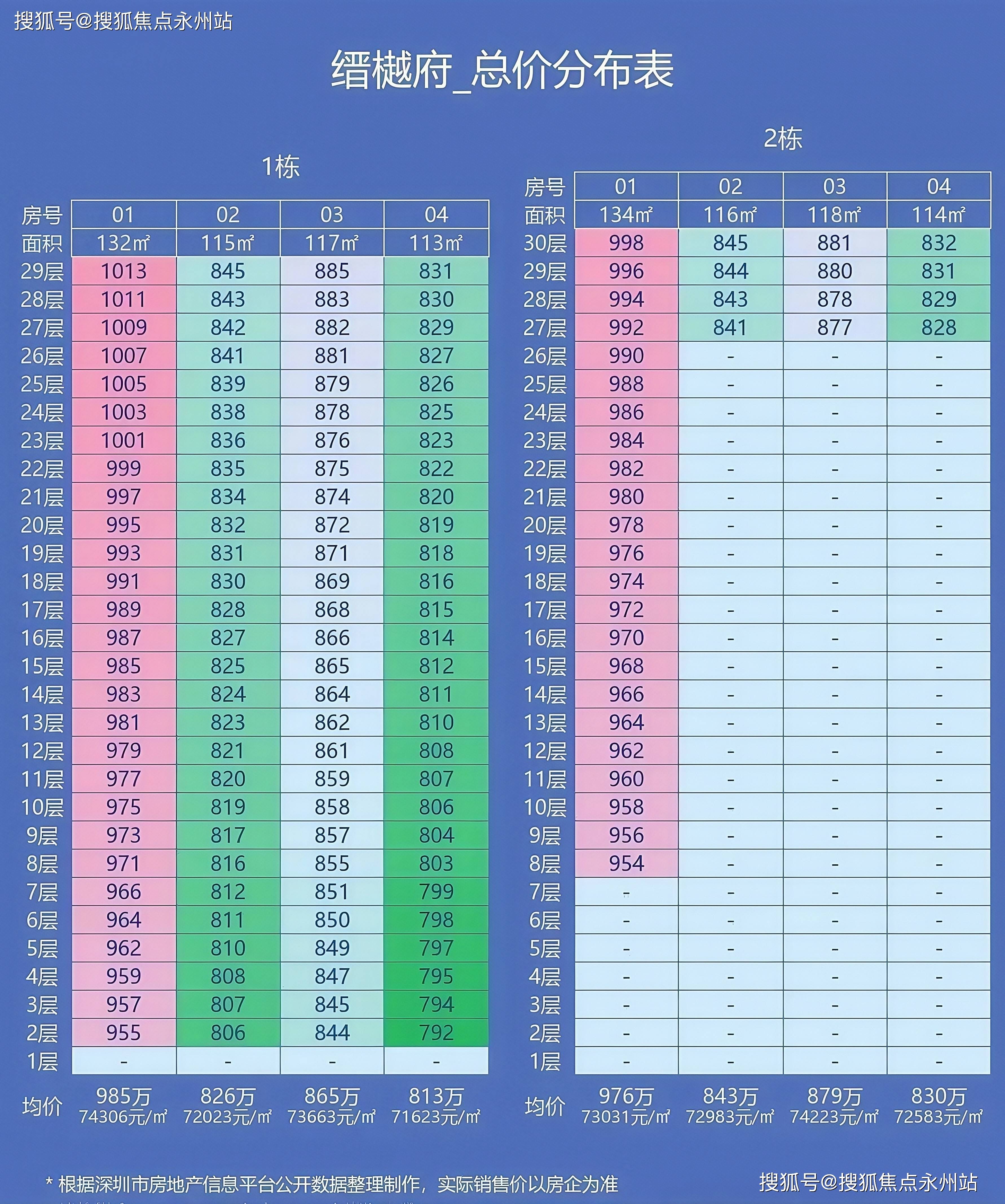 缙樾府总户数为220户,整个项目只有2栋相同平面的100米高纯商品住宅,十字型平面,114-115-118㎡四房各两条腿、133㎡五房2条腿,东南、西南朝向。